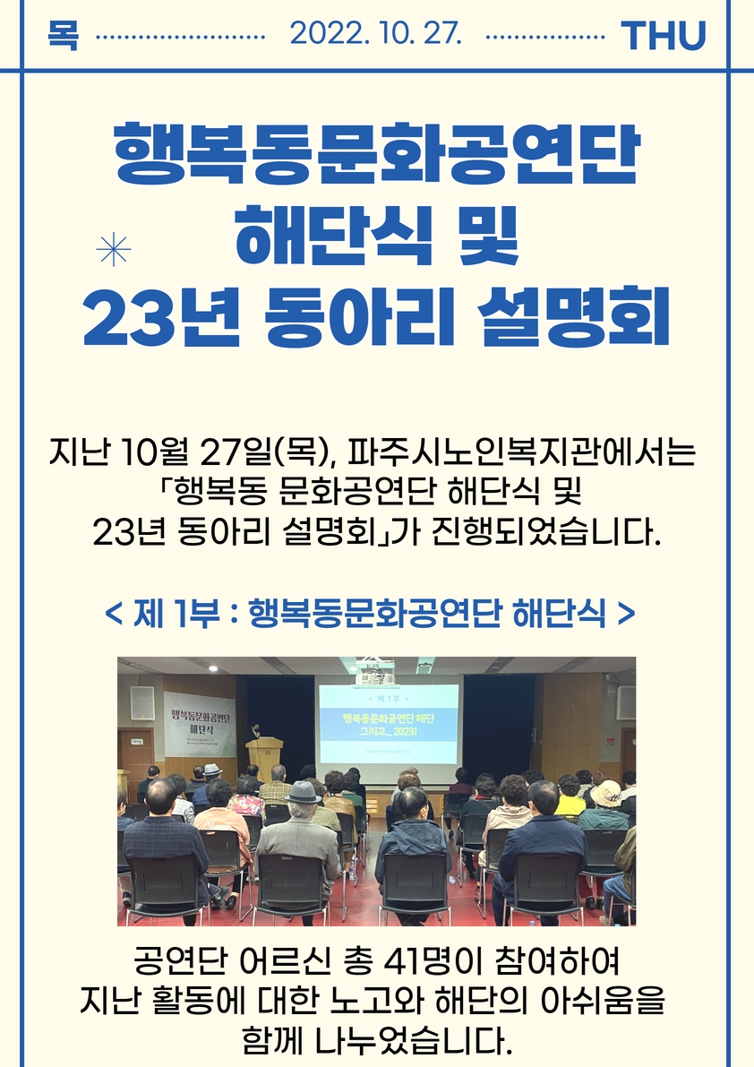 행복동문화공연단 해단식 및 2023 동아리 설명회
